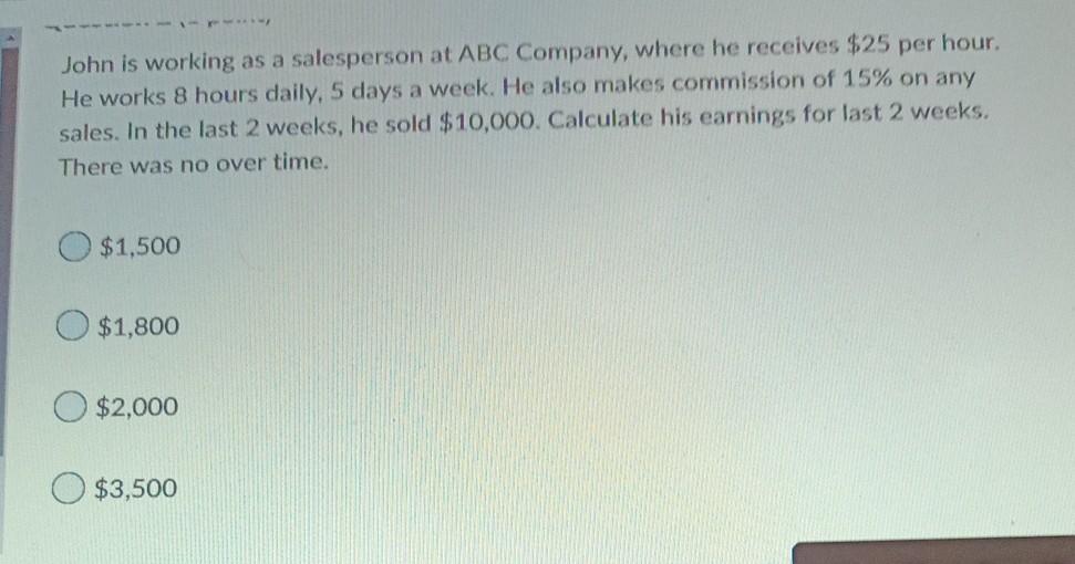 Solved John Is Working As A Salesperson At Abc Company Chegg Com